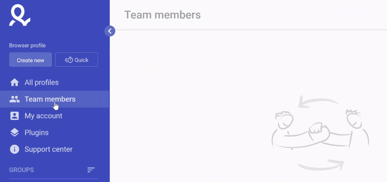 All team-related processes can be managed via the “Team members” tab, which is conveniently located on the main page of the Multilogin interface.